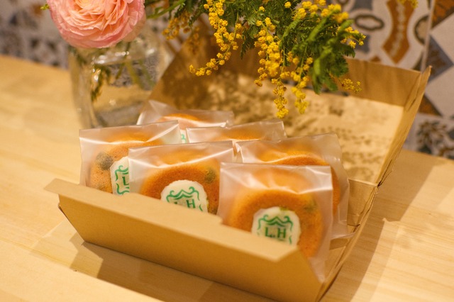 ここ数年、春先になると花屋さんの店頭に たっぷり華やかに置かれるようになったミモザ。 そんなミモザをイメージしたケーキです。 ドライアップルを入れたバナナケーキに ターメリックで鮮やかに染めたクランブルと アーモンドダイスとざらめを乗せて しっとり生地に すっとする香りのターメリック あたたかな春風のようなケーキに仕上げました! 春の訪れを告げる、見た目も味も華やかなケーキです。 6個詰めでのお届けとなります
